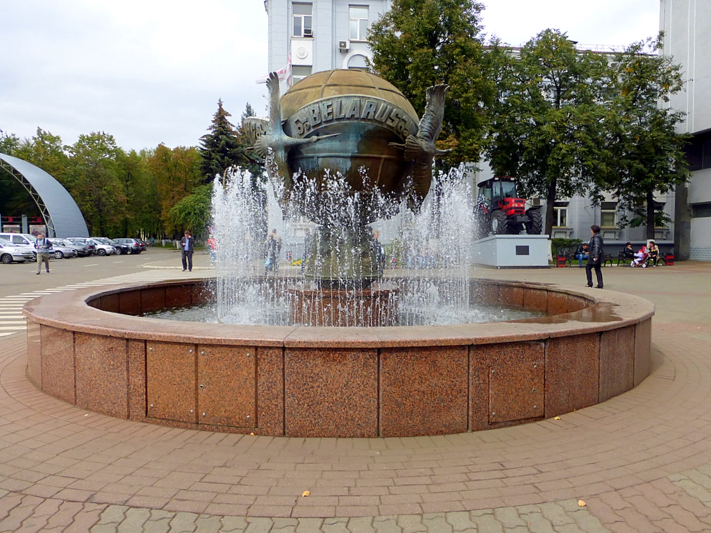 В середине фонтана расположена планета, обрамленная надписями на двух языках − «Belarus» и «Беларусь». К фонтану привлекают внимание и птицы, расправившие крылья. В фонтане для создания композиции из воды используются две сотни струй. В качестве материала для фонтана выбран высококачественный и надёжный гранит «Балморал Ред»: внешний вид которого не меняется на протяжении столетий, он устойчив к резким перепадам температур, а также повышенной влажности.