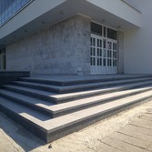 Для реконструкции был выбран высококачественный серый гранит, который не подвержен влиянию влаги, механических воздействий и перепадов температур, что немаловажно при облицовке лестницы. Качественный натуральный камень обеспечит неизменный внешний вид входной группы на протяжении десятилетий.