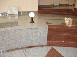 Гранит устойчив к влаге и перепадам температуры, благодаря чему внешний вид лестниц и полов санатория «Ружанский» не будет меняться на протяжении десятков лет. Гранит также является прочным материалом, устойчивым к стиранию и механическим повреждениям.